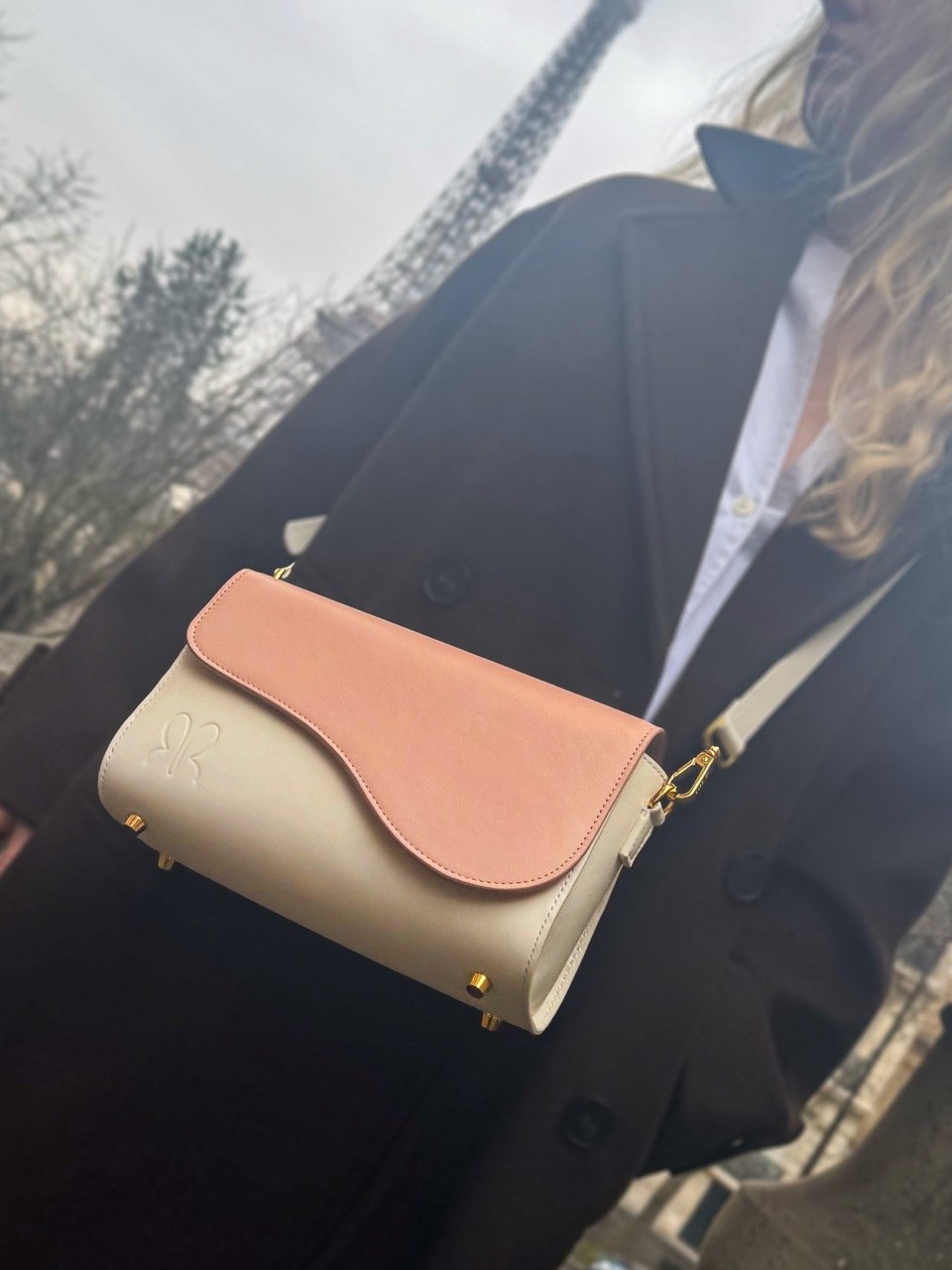 Cal·la bag in Creme with blush flap 289€